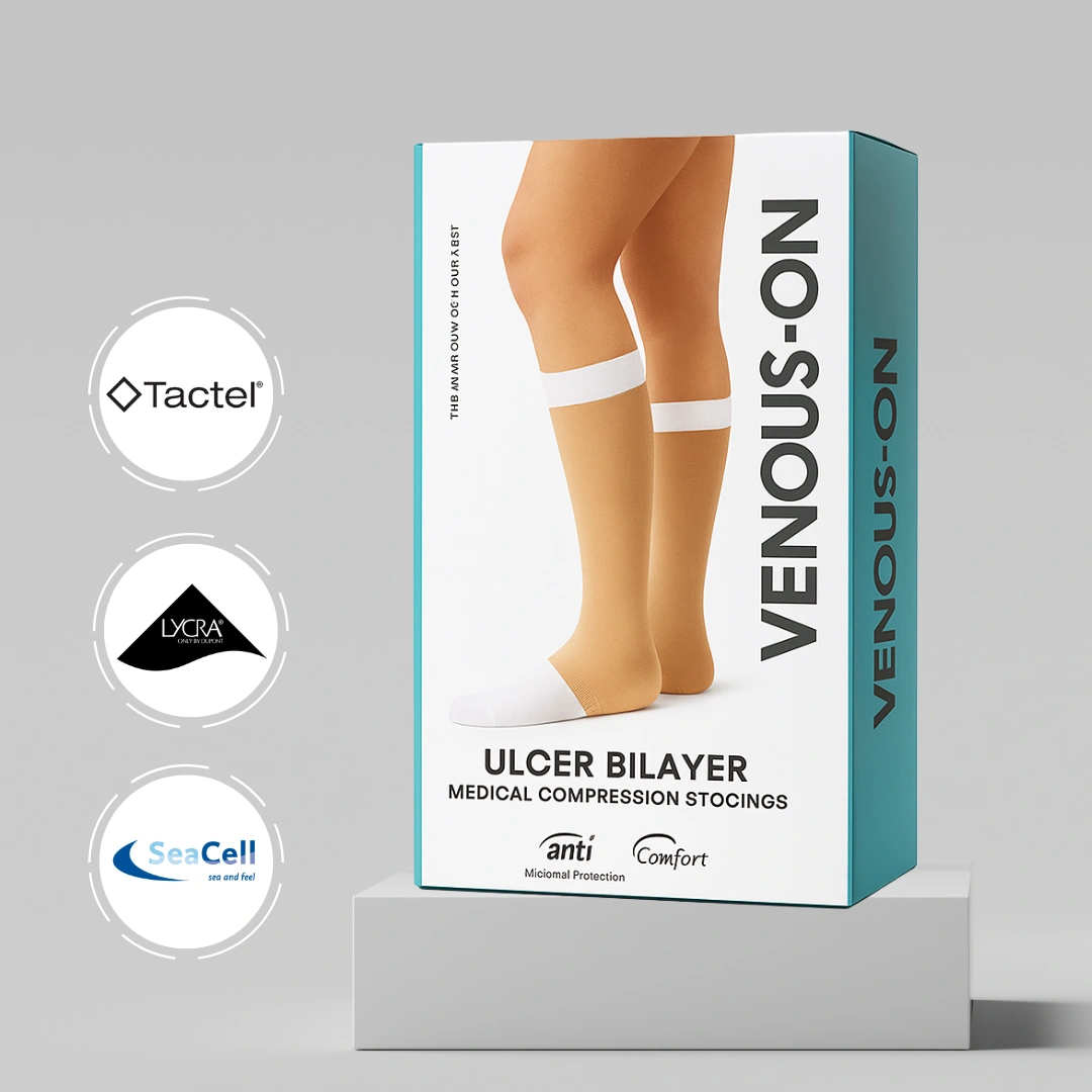 Ulcer Bilayer Stockings are a specialised medical compression solution created for patients suffering from venous leg ulcers and diabetic foot ulcers. These stockings combine two layers – a soft inner liner and a medical-grade compression outer stocking – to provide targeted healing support, maintain wound dressings in place, and reduce the recurrence of ulcers.